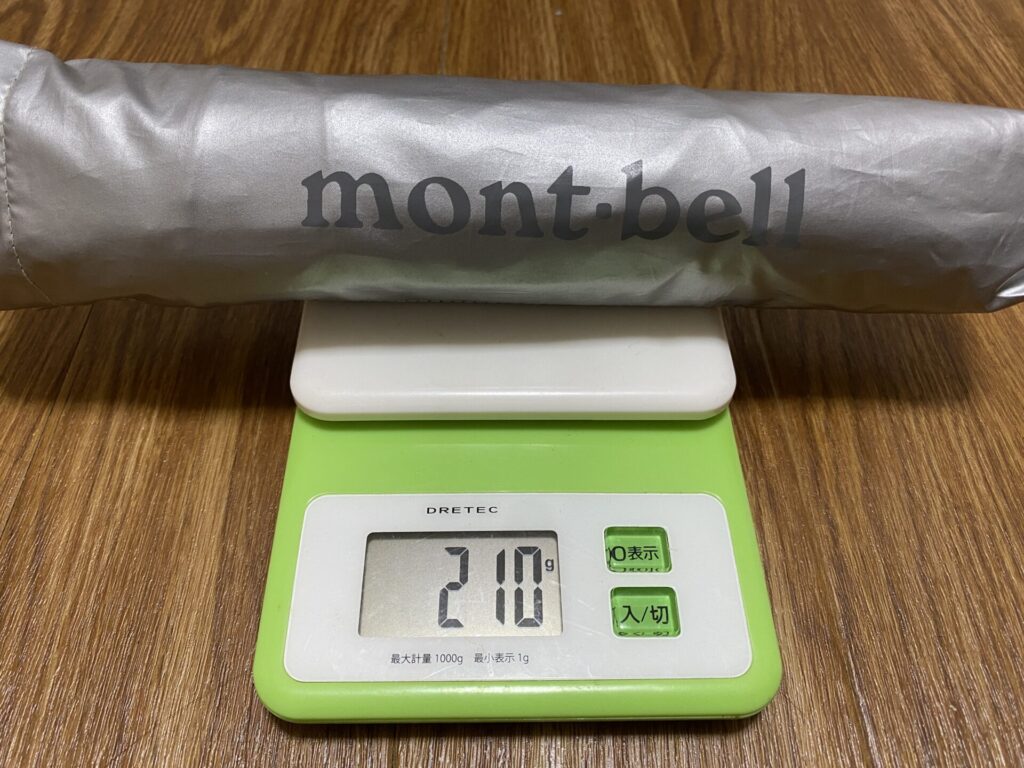 モンベルの「サンブロックアンブレラ」の重量は公式スペックでは200gですが、実際に測ると210gありました。