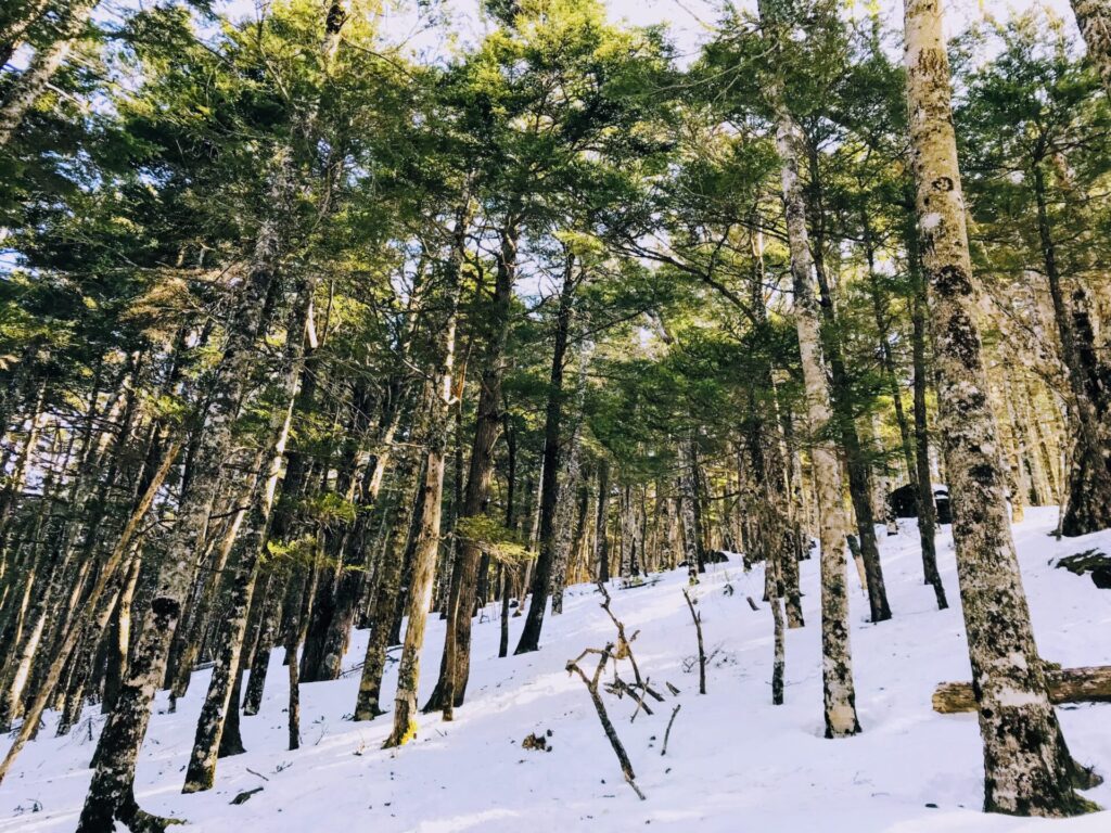 登山道は全体的に樹林帯区間が多いものの、山頂付近は植生に乏しい森林限界上の区間となり、積雪期の山に対する相応の知識・経験と状況に応じた判断が必要になってきます。