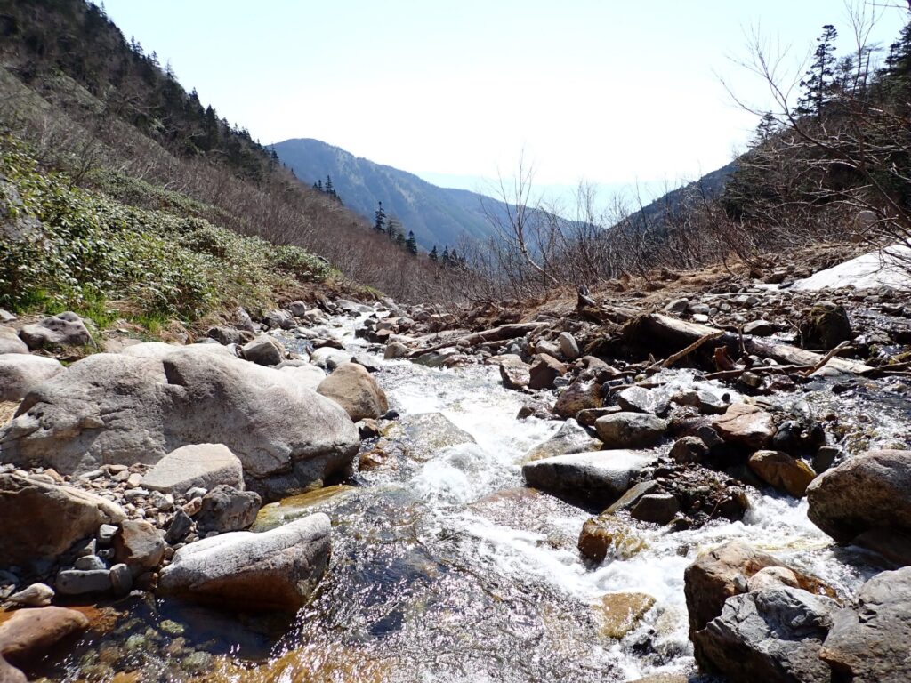 沢沿い、雪渓、稜線といった登山中に見る自然の様々な姿を楽しみながら山頂を目指せるのが、一ノ沢ルートです。